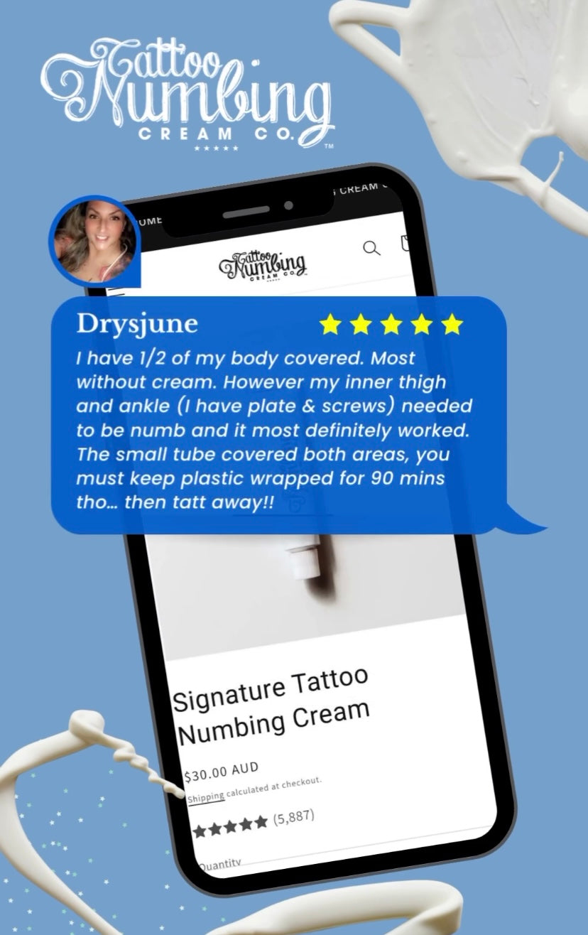 Our Signature Tattoo Numbing Cream is your secret weapon for your next tattoo appointment. Fast Delivery from Sydney.